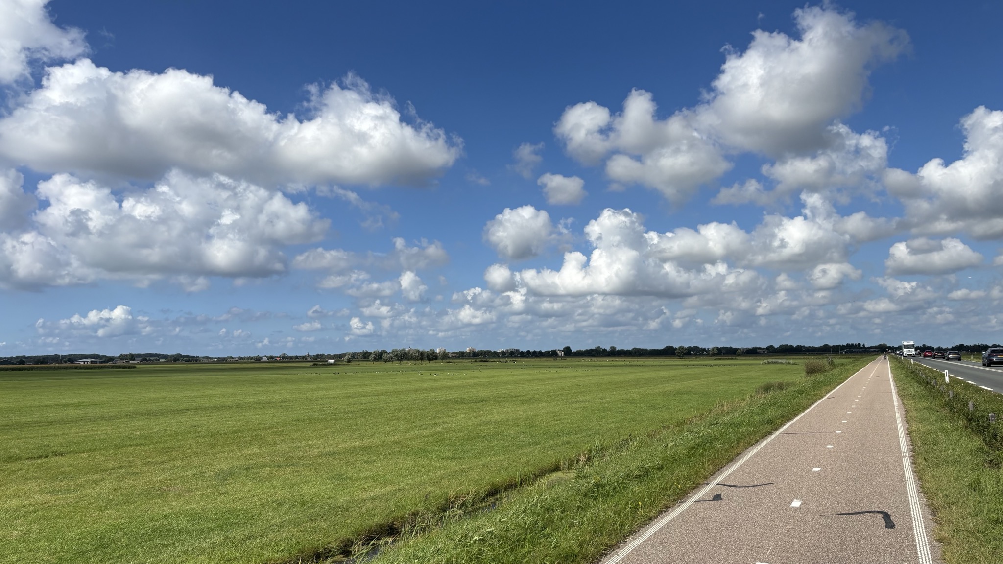 Стартанул после обеда, в два часа дня. Первые двадцать километров бодрячком по велодорожкам в направлении Heiloo. Ветер в харю, но не очень сильный. Солнечно, красиво: